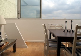 L’agence de Denis Humbert est située à Charenton-le-Pont, dans un duplex dont l’unique verrière donne sans vis-à-vis sur l’envers de la ville: les voies de triage du réseau ferré de la gare de Lyon. L’aménagement intérieur de l’agence rappelle celui d’un bateau où l’agencement est très soigné et partout optimisé. Meubles et lampes de style art déco et affiches de Manhattan montrent par ailleurs sont goût pour l’âge d’or des transatlantiques. Un large escalier mène à l’espace de travail, où bureaux et bibliothèque se côtoient face au panorama.
